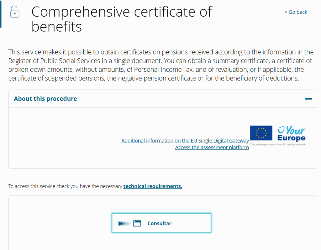 - Find the “Informe Integrado de Prestaciones” (Integrated Benefits Report) procedure.